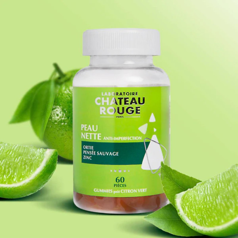 Sirop de glucose – sucre - Acidifiant : acide citrique - Gélifiant : pectine - extrait de sommité fleurie de Pensée sauvage (Viola tricolor) - arôme naturel de citron vert - acide ascorbique (vitamine C) - extrait de feuille d'Ortie (Urtica dioica) - concentré (carthame et citron) - Acidifiant : citrate de sodium - citrate de zinc - extrait de racine de Bardane (Arctium lappa) - Agent d’enrobage : cire de carnauba - biotine (vitamine B8).