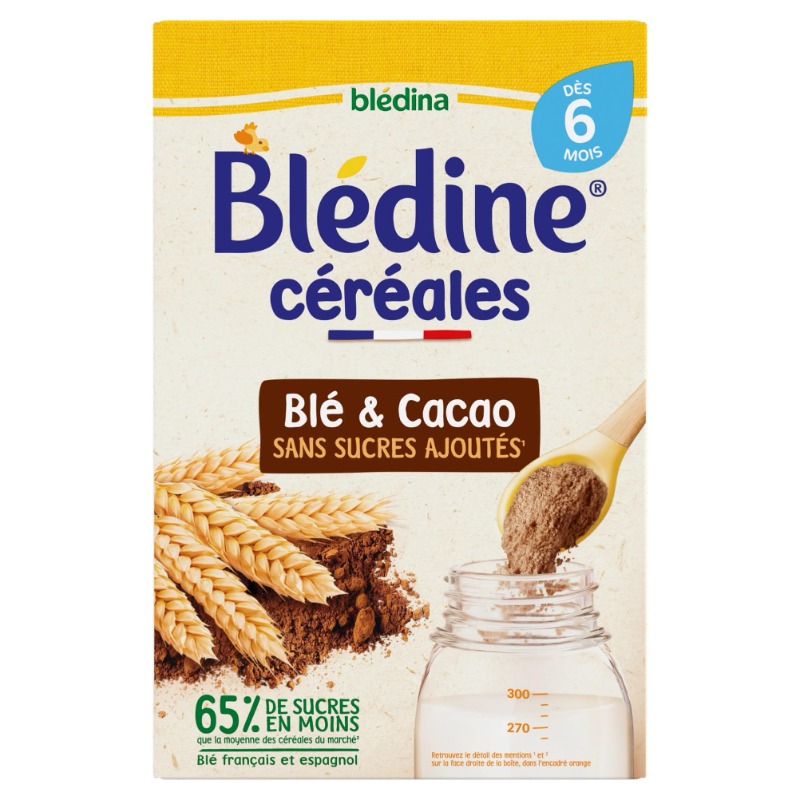 Experts en nutrition infantile et inventeur des céréales pour bébé en France, nous avons à cœur de proposer des recettes adaptées aux besoins et au petit palais de bébé. Nous avons fait le choix de limiter drastiquement la quantité de sucres présente dans nos recettes, et ça ne passe pas inaperçu ! - Une couleur plus claire - Une odeur gourmande plus subtile - Un goût toujours doux et plus délicat - Une texture plus généreuse Nous avons : - Supprimé le sucre blanc de nos recettes. - Modifié nos étpaes de fabrication afin de contrôler la quantité de sucres finale dans nos recettes. - Sélectionné des ingrédients avec précaution pour apporter la juste dose de gourmandise sans négliger le plaisir de bébé. ¹ contient des sucres naturellement présents. 60% de sucres en moins minimum sur la gamme Blédine, par rapport à la moyenne des céréales pour bébé du marché. Moins 74% pour la Blédine Blé & Cacao.