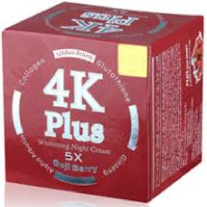 La crème de nuit nourrissante 4K Plus 5X avec de petites particules de Nano-Liposome, de Baie de Goji aide à éclaircir la peau naturellement et des extraits de lotus des neiges qui sont utilisés pour traiter les acnés inflammatoires, les acnés de pus et réduire les cicatrices d’acné. Avec l’alpha arbuțin et le collagène aident à diminuer le pigment de mélanine, les taches de rousseur sont plus lumineuses, raffermissent les pores, lissent la peau et hydratent. Les extraits de ginseng aident à rendre la peau plus forte en protégeant la peau des radicaux libres. Tous les ingrédients utiles de la crème de nuit nourrissante 4K Plus qui peut faire un miracle comme éclaircir et éclaircir la peau en 1 semaine.