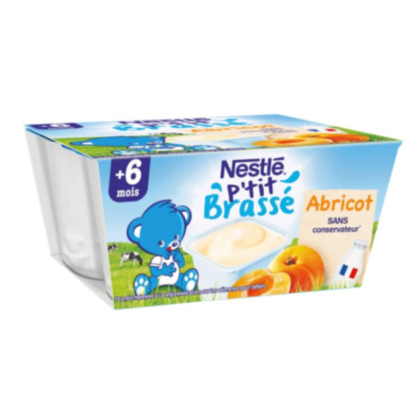 NESTLÉ P'tit Brassé à l'abricot, le laitage conçu exprès pour bébé réduit en sucres . Produit dans les Vosges avec du lait français local. Savoureux, ce laitage pour bébé dès l'âge de 6 mois se donne au goûter ou au dessert. Pratique pour les parents, ce petit pot destiné à bébé vous accompagne partout car jusqu'à son ouverture, il peut être conservé à température ambiante et non pas au frigo. Conformément à la réglementation sur les aliments pour bébés. Par rapport à la moyenne des yaourts, laits fermentés ou spécialités laitières aux fruits, sucrés - Ciqual 2020. La majorité de notre lait est collecté à moins de 200km de notre lieu de fabrication.