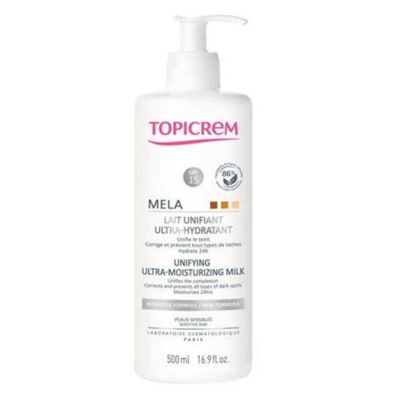 Topicrem MELA Lait Unifiant Ultra-Hydratant 500 ml est un soin unifiant, correcteur et hydratant qui convient particulièrement aux peaux sensibles.