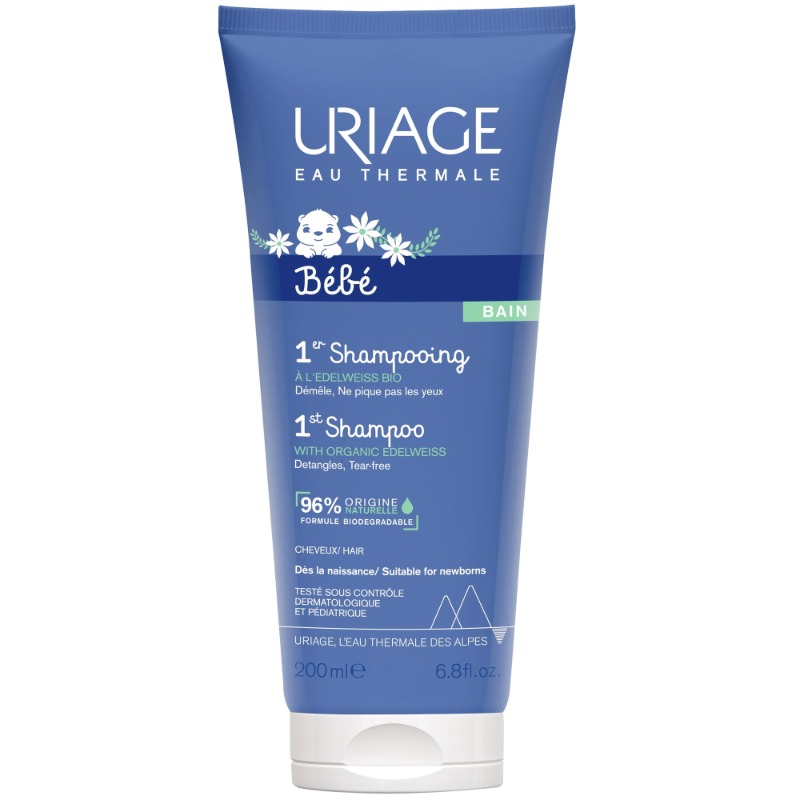 Uriage Bébé 1er Shampoing 200 ml est un shampoing sans savon, spécialement formulé pour les plus petits, dès la naissance.