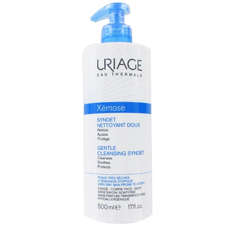 Le nettoyant doux Xemose Syndet a été formulé par Uriage sous forme de gel-crème, parfaitement adapté à la toilette quotidienne des peaux atopiques et très sèches. L'Eau Thermale d'Uriage, principal ingrédient de ce soin lavant, est enrichie en oligo-éléments et en minéraux : elle permet donc d'apaiser de manière durable les peaux fragiles. Le nettoyant Xemose Syndet n'agresse pas la peau puisqu'il repose sur une base lavante très douce. Enfin, la peau est préservée et protégée de la sécheresse grâce aux agents surgras qui entrent dans la composition de ce soin.
