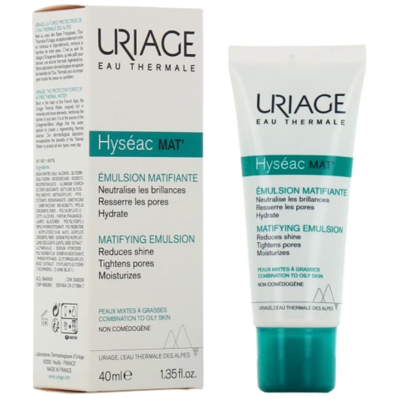 L'émulsion matifiante Hyséac Mat' a été développée par Uriage pour hydrater et unifier le teint des peaux à tendance acnéique. Cette émulsion a été pensée en tant que soin triple action permettant de :